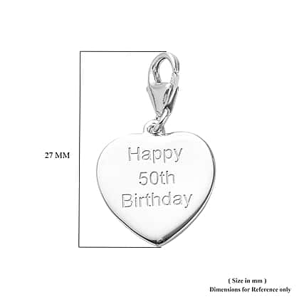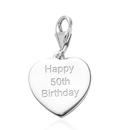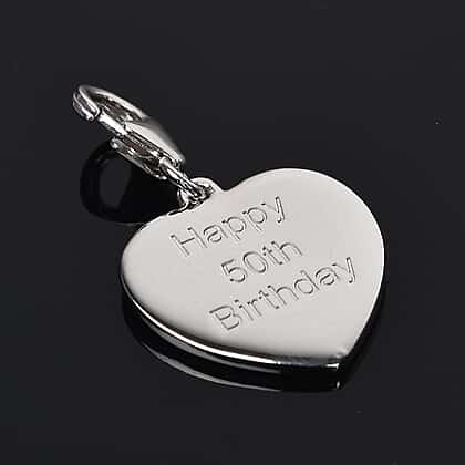 - This beautifully crafted heart charm is engraved with a message Happy 50th Birthday message