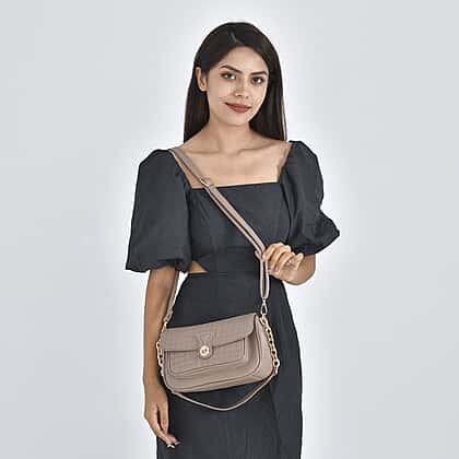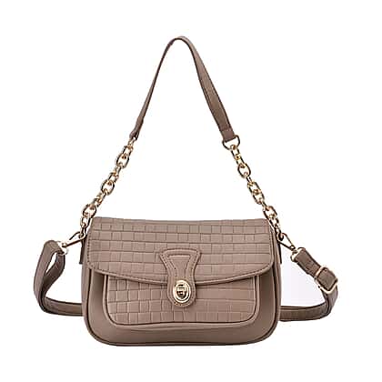 Get this stylish check pattern crossbody bag to create a statement style with each pair of clothes. This bag will make your fashion more accessible with its colour and design. Crafted in semi-PU leather, this bag has a beautiful check pattern. The main compartment of this bag is covered by a flap and fasted with an easy clasp. The interior features two slip pockets and one zipper. This crossbody bag has a resizeable strap attached to a shimmering metal link chain at the bottom. The back zipper outside creates more accessible storage for your frequently used items.