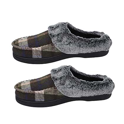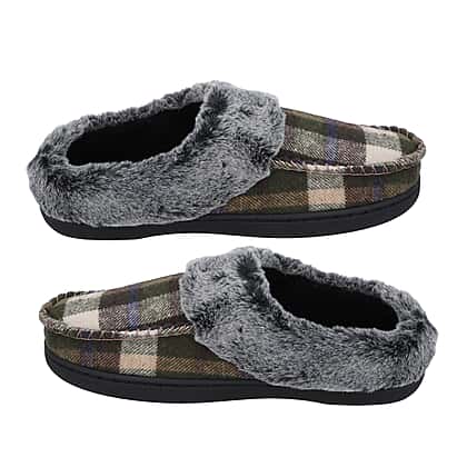 Checkered Pattern Faux Fur Slipper - Khaki & Grey