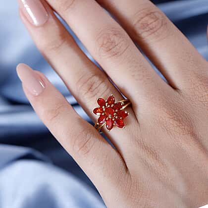 Cherry Fire Opal Floral Ring in 18K Yellow Gold Vermeil Plated Sterling Silver