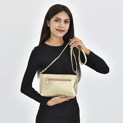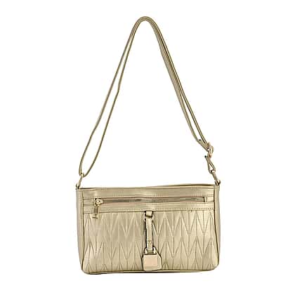 Chevron Pattern Crossbody Shoulder Bag with Adjustable Strap (Size 25x16x6 cm) - Gold