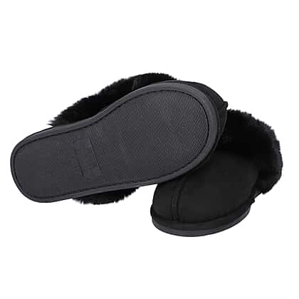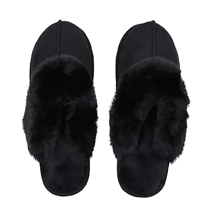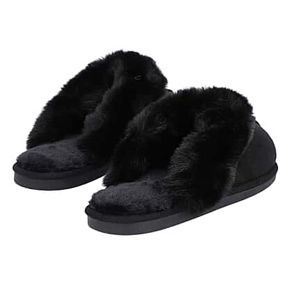 Chic and Elegant Rabbit Faux Fur Slippers (Size 3- 4) - Black