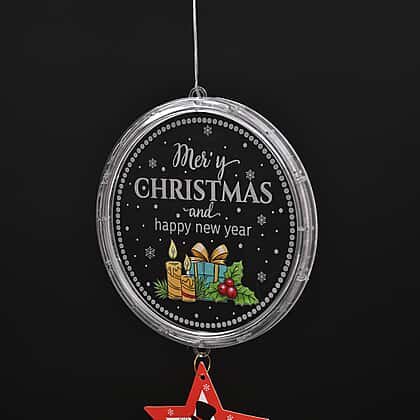 • Disk hanging light has a motif design with Christmas and star pendant