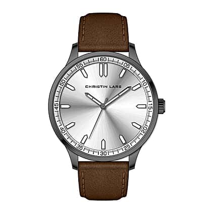 CHRISTIN LARS Quartz Movement Silver Dial Watch with Brown Strap