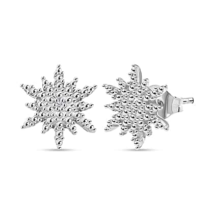 LUXURIANT Lab Grown Diamond Snowflake Earring in Platinum Overlay Sterling Silver