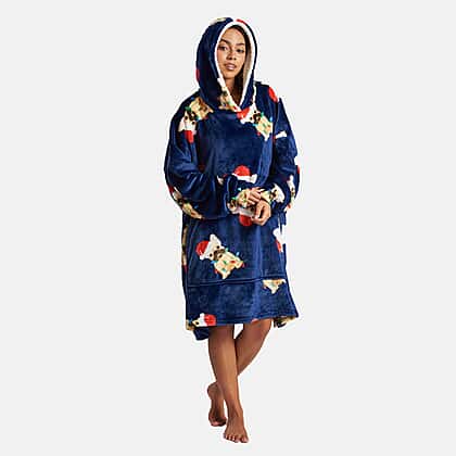 Christmas Frenchie Luxury Fleece Snuggle Womens Hoodie (One Size) - Navy