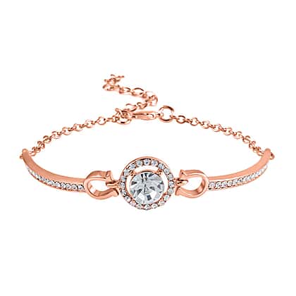 3 Piece Set - White Crystal Necklace, Bracelet and Earrings in Rose Goldtone with Jewellery Box