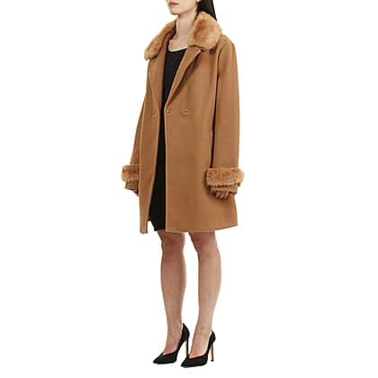 Elevate your wardrobe collection for the winter season with this 19V69 Italia by Alessandro Versace Faux fur detailing women's coat. It is made from warm and comfortable fabric with faux fur detailing around neck and sleeve with belt and front button detailibng