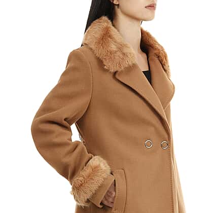 - The eye-catching faux-fur detailing on the neckline and sleeves