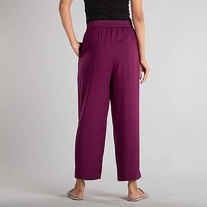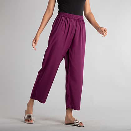 Make room in your casual wear collection for these soft trousers. Made from 100% viscose fabric to deliver breathable comfort and minimise the chances of irritation. Designed with a pull-on style, elastic waistband and high-rise waist for a flattering appearance. As convenient as they are comfortable, these trousers have pockets that let you keep small items.