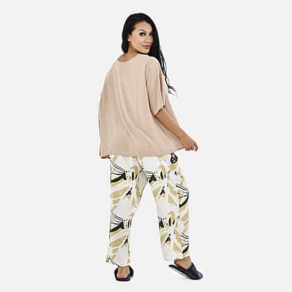 Tamsy 100% Viscose Loungewear Sets (Size M,12-14) - Khaki Brown & White
