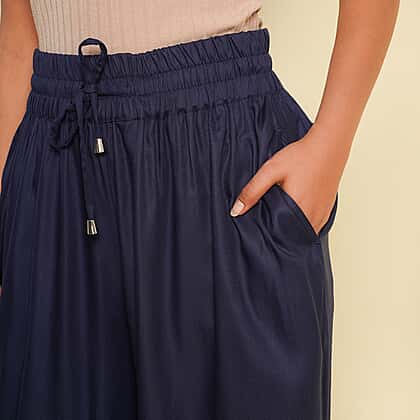 Wide-legged palazzo pants, which were quite the trend in Spring/Summer 2021, are making a comeback for the laidback chic style they offer. The Tamsy plain palazzo in navy offers a smart choice for day outings, weekend getaways and work calls. It can be paired with tops or t-shirts and offers a soft, comfortable fit as it is made in 100% viscose.