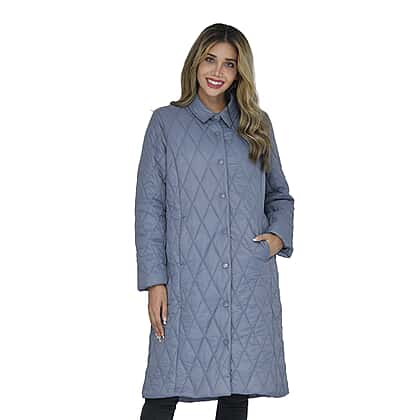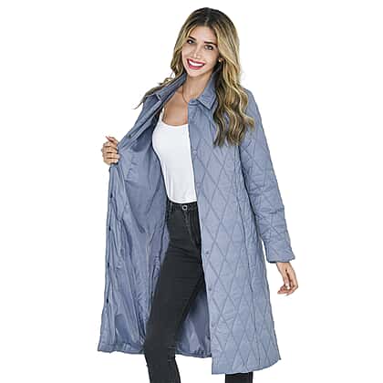 TAMSY Quilted Pattern Long Puffer Jacket for Women - Grey