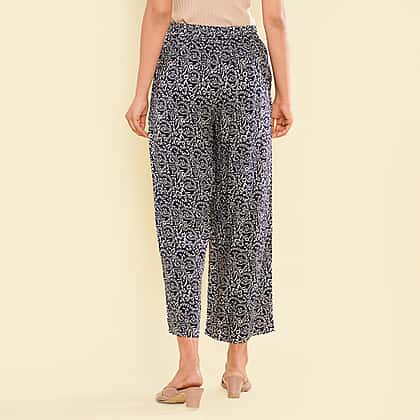 A throwback to an iconic style, this printed palazzo flowing ensemble makes a statement with each step you take. Made from 100% viscose fabric to deliver enhanced comfort during the hot summer days. A simplistic silhouette with a high-rise elastic waistband for an easy-going style. Style this women's palazzo with a pair of sandals and a t-shirt for a casual edge.