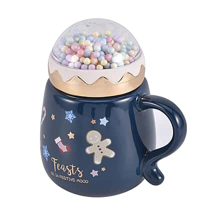 Christmas Theme Ceramic Coffee Mug with a Metal Spoon (Size 13x9 Cm) - Blue