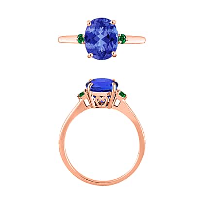 18K Rose Gold AAA Tanzanite and Colombian Emerald Classic Solitaire Ring in Gold Wt. 5.5 grams, 2.10 Ct
