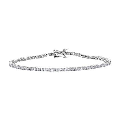 LUXURIANT 2 Ct. Lab Grown Diamond Tennis Bracelet (Size 7.5) with GB Lock Box in Rhodium Overlay Sterling Silver (SI-GH)