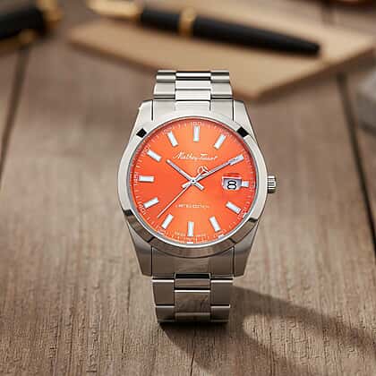 Mathey Tissot Limited Edition Sunray Quartz Movt. 5ATM WR Orange Dial Mens Watch with Silver Colour Stainless Steel Strap