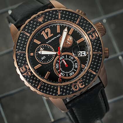 Morphic M51 Series Quartz Movt. 10ATM WR Black Dial with Rose Case Mens Watch with Black Leather Strap