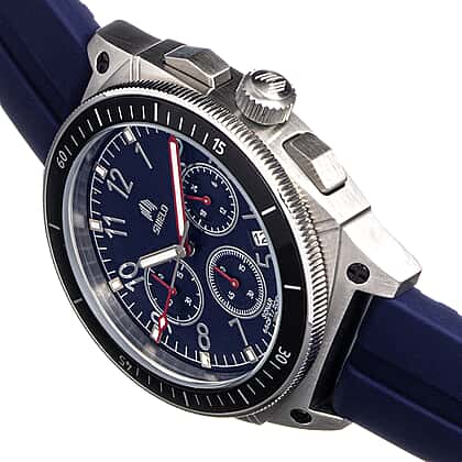 Bringing together strength and style, this Shield Sonar blue-dial men's watch is a bold everyday companion with dependable performance. Its 316L stainless steel case, Japanese Seiko quartz movement and full-function chronograph ensure accuracy, while the sapphire-coated mineral crystal and screw-down crown add welcome durability. The deep blue dial features Swiss Super-LumiNova hands, markers, and a 24-hour sub-dial, making it easy to read in all conditions. Finished with a comfortable rubber strap, logo-engraved clasp and impressive 20ATM water resistance, it’s a piece designed for women seeking a gift that blends practicality with a refined, modern look.