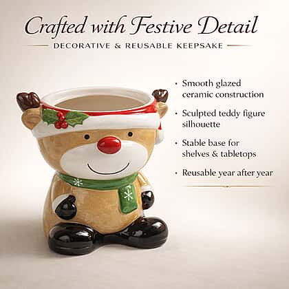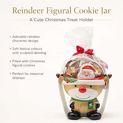 Bring holiday joy to your home with The Leonardo Collection Reindeer Cookie Jar Gift Set. This adorable reindeer design features a bright red nose, festive hat, and a playful expression, making it a charming addition to your Christmas decor. The cookie jar is perfect for storing holiday treats, cookies, or small goodies, combining functionality with a whimsical touch. Whether you are gifting it to a loved one or using it to add a little holiday magic to your kitchen, this reindeer jar is a delightful piece that spreads cheer and festive spirit throughout the season. A must-have for any holiday setting.
