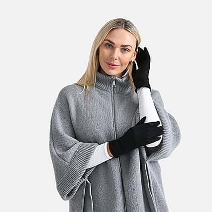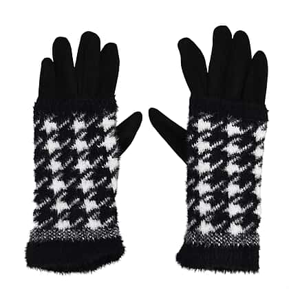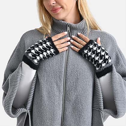 Two-in-One 5 Finger Gloves & Fingerless Mittens - Black & White