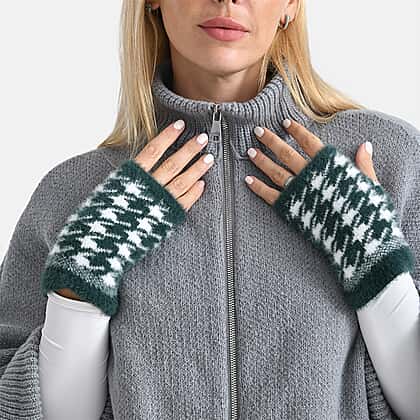 Two-in-One 5 Finger Gloves & Fingerless Mittens - Green