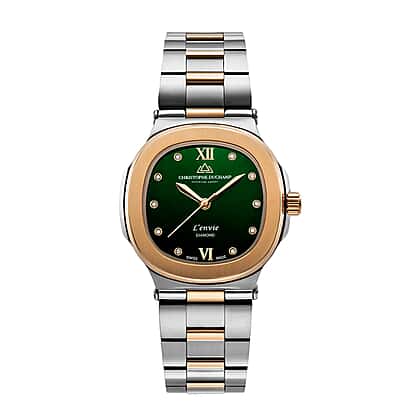 Christophe Duchamp Lenvie Swiss Quartz Movt. Green Dial Diamonds Studded WR Watch with Two Tone Chain Strap