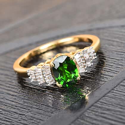 Chrome Diopside and Diamond Ring in 14K Gold Overlay Sterling Silver 1.00 Ct.