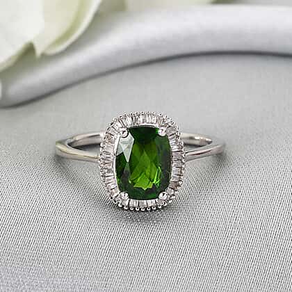 1.49 Ct. Chrome Diopside and Diamond Ring in Platinum Plated Sterling Silver