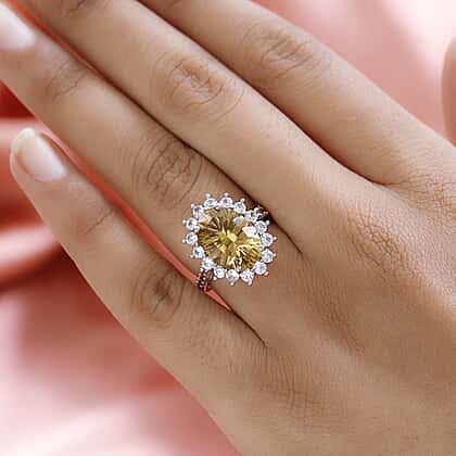 - The majestic citrine oval at the centre exhibits a golden yellow hue