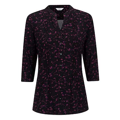 Classic Pintuck Mandarin Collar Bloue (Size 10) - Black & Purple