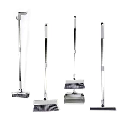Make household cleaning effortless with the 4-in-1 Broom and Dustpan Set. This set has a 360° rotating broom head and an easy-to-use dustpan, this set is designed to tackle indoor and outdoor cleaning tasks. Its built-in scraper helps remove tangled debris from the bristles, saving time and making the process much easier. With its lightweight, space-saving design, this broom and dustpan set can be neatly stored away, whether hung on the wall or tucked into a narrow space.