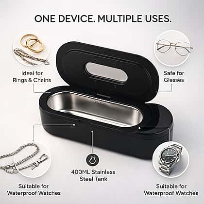 Designed to deliver powerful and efficient cleaning, the livmore multi-purpose cleaner offers a convenient solution for maintaining jewellery, glasses, watches and small household items. Using advanced ultrasonic technology, it gently removes dirt, residue and build-up from hard-to-reach areas without harsh scrubbing. The sleek black design features a compact, modern look that fits neatly on countertops or dressing tables. Easy to operate with simple touch controls, it provides effective results in just minutes. Ideal for everyday maintenance, this versatile cleaner helps restore shine and freshness to your valuable accessories and essentials.