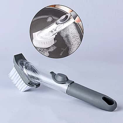 • EASY TO USE: Install the brush head and then open the button to inject the liquid into the scrub body; then press the button so you can clean dishes, bowls, pots, glass, anything you want to clean with ease