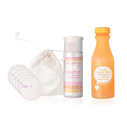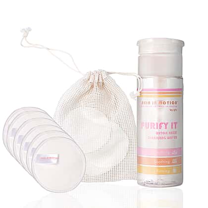 Skin in Motion- Purify Kit (Incl. Witch Hazel Water & Re-usable Makeup Remover Pads) (With Free Orange Water Bottle)