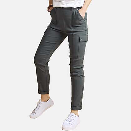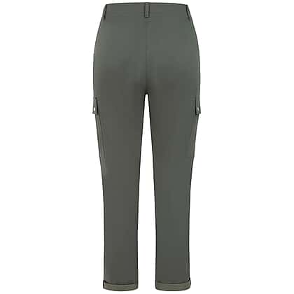 Step into effortless everyday style with these Emreco combat style stretch utility Bengaline trousers in dark khaki. Designed for comfort and practicality, these slim-fit trousers feature a flattering mid-rise waist and an ankle-length cut for a modern finish. The stretch bengaline fabric ensures flexibility while maintaining shape wear after wear. With multiple pockets, including front slip, side cargo, and back patch pockets, they blend utility with sophistication. Finished with a button and zip fastening plus belt loops for added versatility, these trousers are perfect for pairing with casual tops or structured shirts.