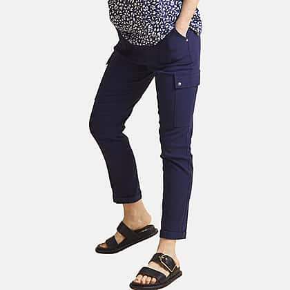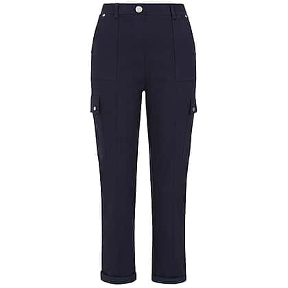 Update your wardrobe staples with these Emreco combat style stretch utility Bengaline trousers in navy. Combining comfort, functionality, and modern appeal, these ankle-length trousers are crafted from stretch bengaline fabric for a flattering, flexible fit. The mid-rise waistband and slim-cut leg create a clean, streamlined look that works effortlessly from day to night. Finished with front, back, and cargo pockets for a touch of utility charm, they’re ideal for everyday wear. Style them with trainers for casual days or loafers for a smarter look.