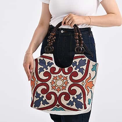 Infuse your outfit with artistic flair using this abstract ethnic style jute tote bag in warm beige tones. Designed with a bold mix of earthy reds, blues, and oranges, it’s a striking piece that combines culture and craftsmanship. The eco-friendly jute exterior and soft polyester lining ensure both durability and comfort. With a roomy interior, zipped compartments, and sturdy 10-inch handles, it’s perfect for everyday use. Whether for work, travel, or shopping, this statement tote adds a touch of elegance and practicality to your day.
