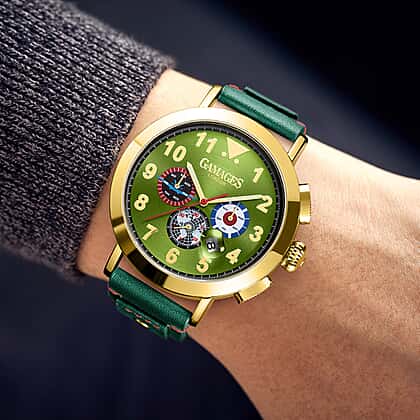 The Gamages Of London PRECISION Hand Assembled Automatic Movement Olive Dial 3 ATM Water Resistant Watch with Green Leather Bracelet