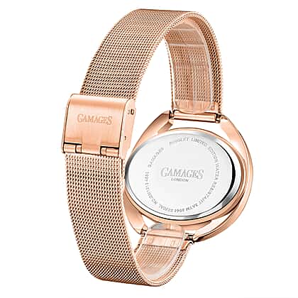 The Gamages Of London Ringlet Diamond Swiss Quartz Movement Rose Dial Water Resistant Watch with Rose Gold Milanese Bracelet