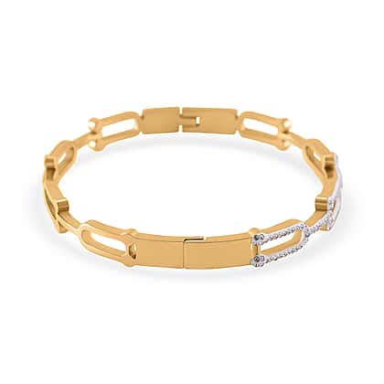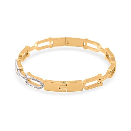 White Austrian Crystal Bangle (Size - 7.5) With Enamel in Yellow Gold Tone