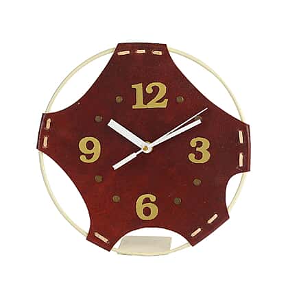 Handcrafted Round Leather Table Clock Size 20.9x20.9 Cm