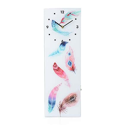 Wall Decor - Feather Pattern Rectangle Glass Wall Clock (Size 60x20x4 Cm)