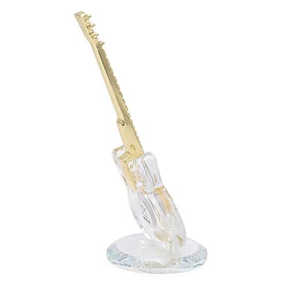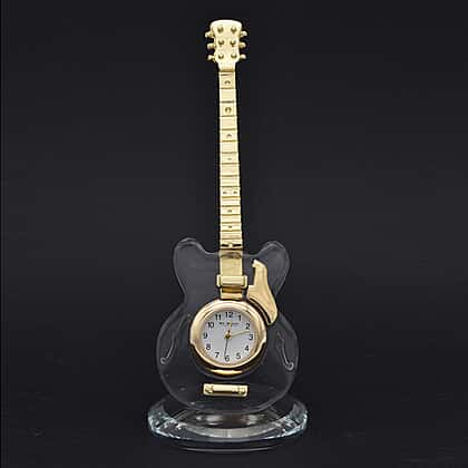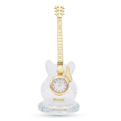 WILLIAM WIDDOP Miniature Crystal Guitar Clock in Gold Tone