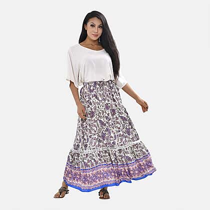 Close Out - 100% Viscose Paisley Print Maxi Skirts (One size - 8-18 ) - Light Mint, Purple and Pink