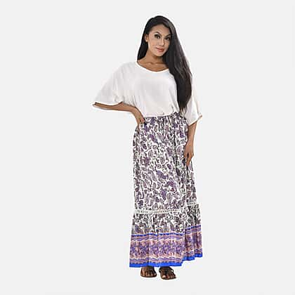 Go with the flow with this printed maxi skirt. It features an elasticated waist for a proper grip, printed fabric, and lace details at the bottom. You can pair it with a solid colour top or printed blouse to complete the look.