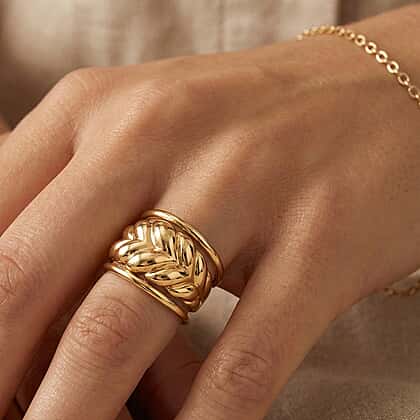 Bring a bold yet elegant statement to your jewellery collection with this stunning 9K yellow gold braided ring. Crafted in hypoallergenic, tarnish-resistant gold, it features a textured braid design that symbolises unity and strength. The open honeycomb gallery under the setting adds both comfort and airflow, ensuring it feels as good as it looks. With its polished finish and warm golden hue, this ring effortlessly transitions from casual outings to evening events. Perfect for women who value both style and symbolism, it’s a high-quality piece designed to be treasured. A wearable reflection of craftsmanship and sophistication in one beautiful creation.