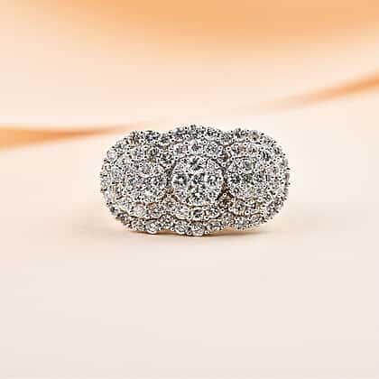 - The cluster ring features 97 round diamonds weighing 2.01 carats