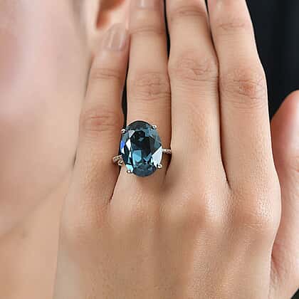 The Montana Austrian Crystal Ring in Platinum Overlay Sterling Silver is a dazzling showcase of brilliance and elegance. Adorned with a substantial Montana Austrian crystal, this ring sparkles in a vivid blue aura, offering a luxurious and captivating look. The platinum overlay adds a layer of sophistication, making it a perfect choice for those seeking a statement piece that combines glamour with a touch of regality.